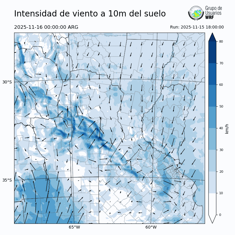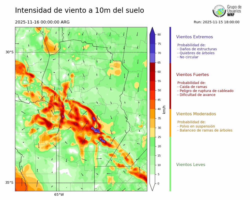 • Intensidad máxima: 13.91 km/h (16/11/2025 03hs.)