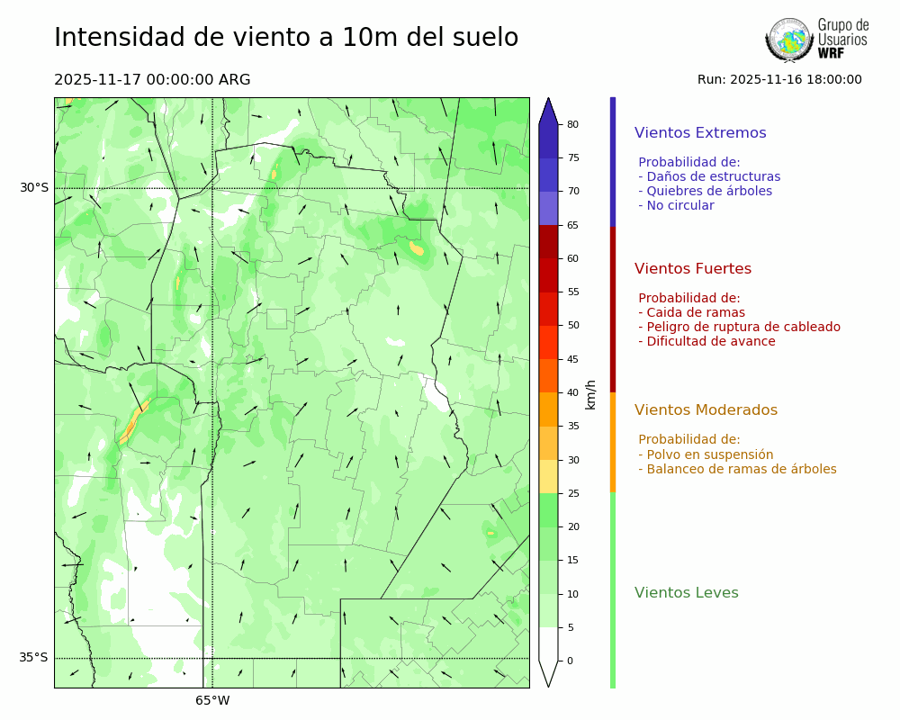 • Intensidad máxima: 8.29 km/h (17/11/2025 04hs.)