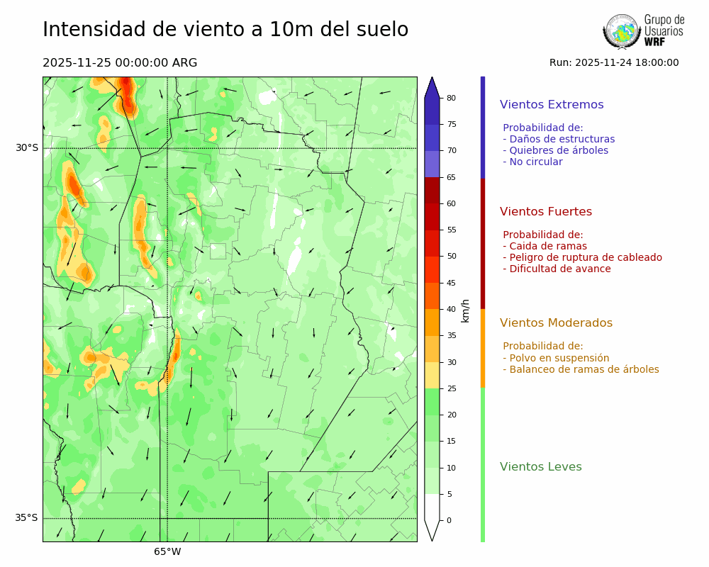 • Intensidad máxima: 14.34 km/h (25/11/2025 09hs.)