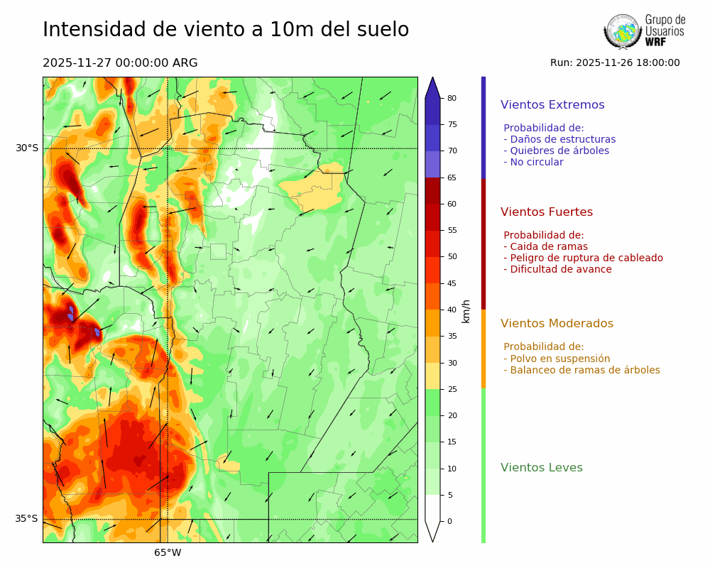 • Intensidad máxima: 18.59 km/h (27/11/2025 06hs.)