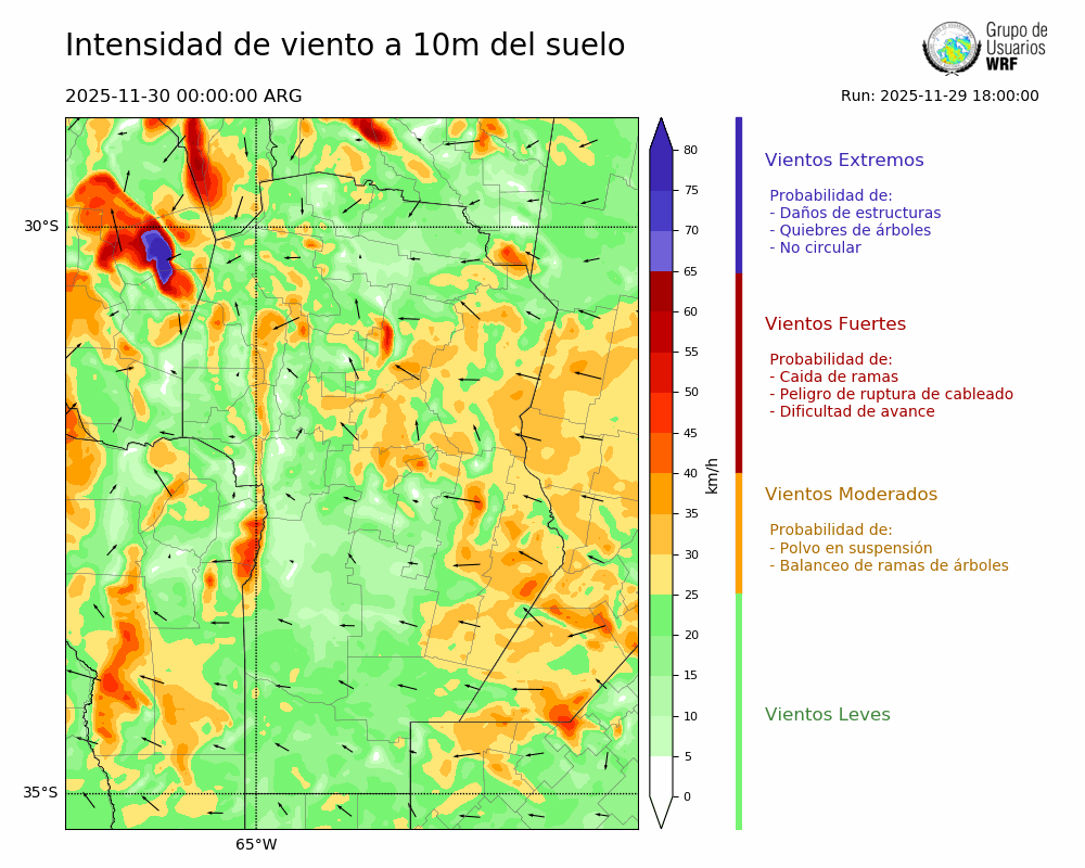 • Intensidad máxima: 21.93 km/h (30/11/2025 04hs.)