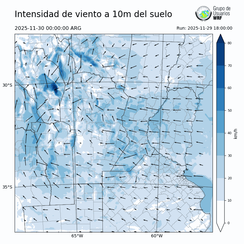 • Intensidad máxima: 11.53 km/h (30/11/2025 16hs.)
