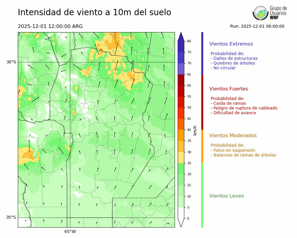 • Intensidad máxima: 11.07 km/h (01/12/2025 20hs.)