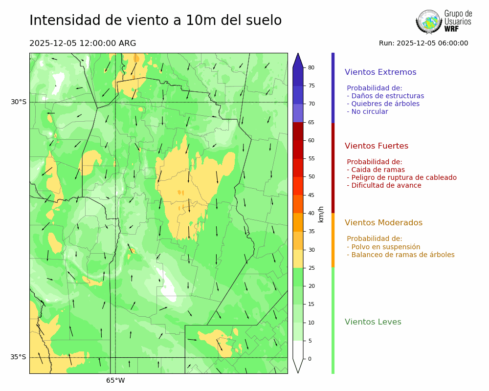 • Intensidad máxima: 23.49 km/h (05/12/2025 18hs.)