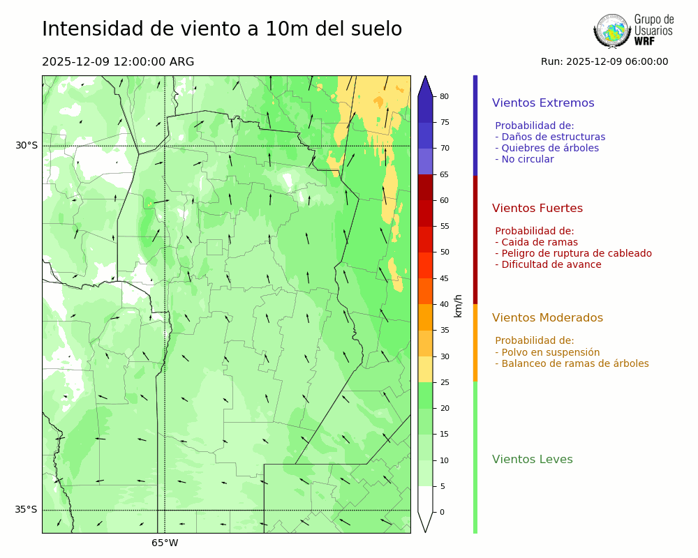• Intensidad máxima: 11.88 km/h (09/12/2025 13hs.)