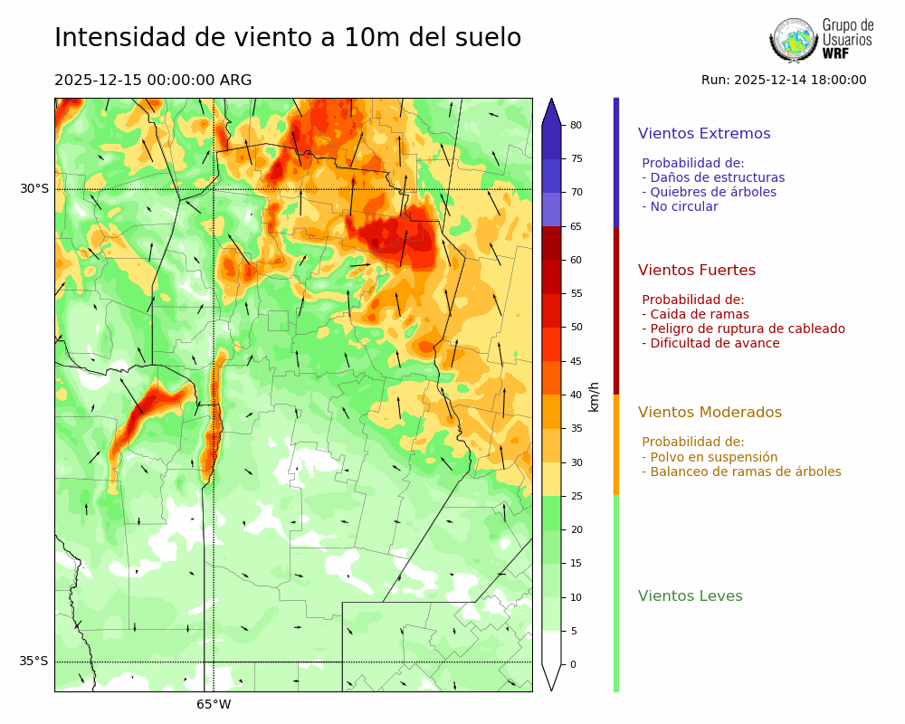 • Intensidad máxima: 17.96 km/h (15/12/2025 00hs.)