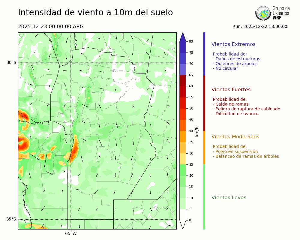 • Intensidad máxima: 11.38 km/h (23/12/2025 02hs.)