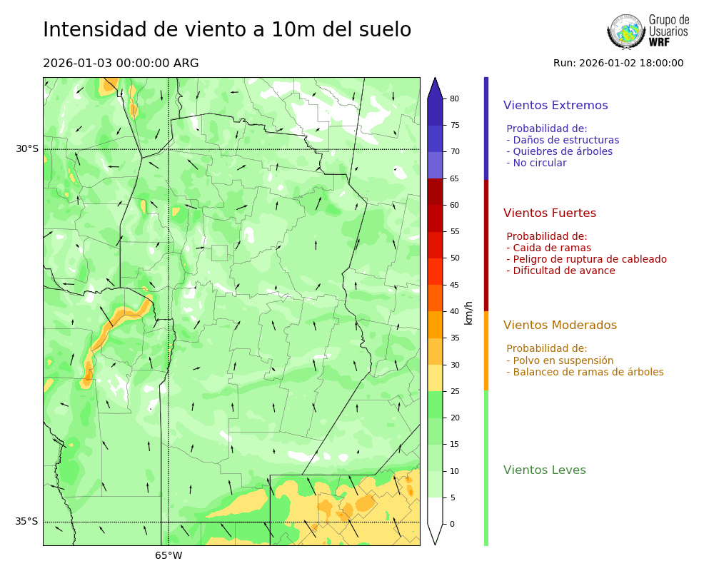 • Intensidad máxima: 6.13 km/h (05/01/2026 03hs.)