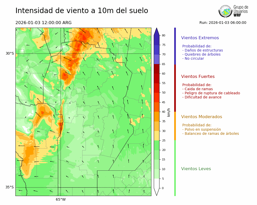 • Intensidad máxima: 4.29 km/h (05/01/2026 04hs.)