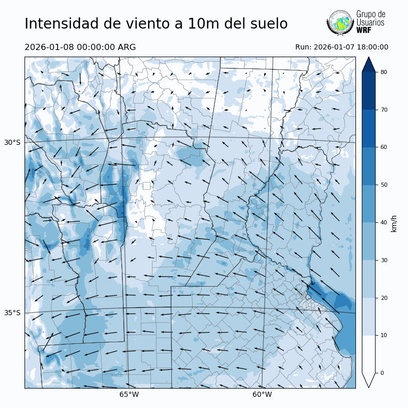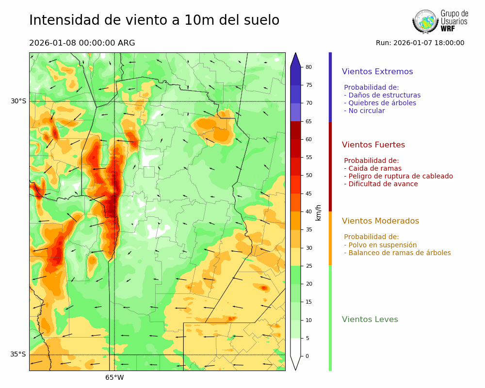 • Intensidad máxima: 15.00 km/h (08/01/2026 10hs.)