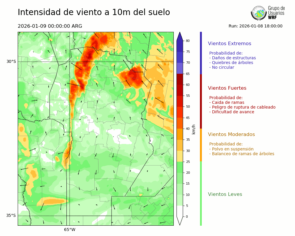 • Intensidad máxima: 16.26 km/h (09/01/2026 01hs.)