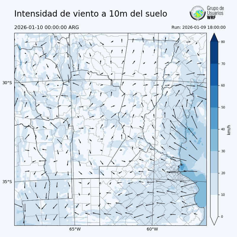 • Intensidad máxima: 8.72 km/h (10/01/2026 00hs.)