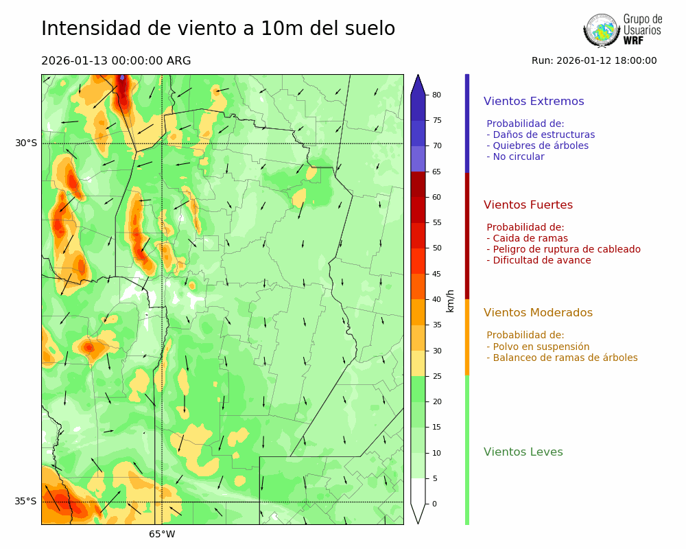 • Intensidad máxima: 14.45 km/h (13/01/2026 11hs.)