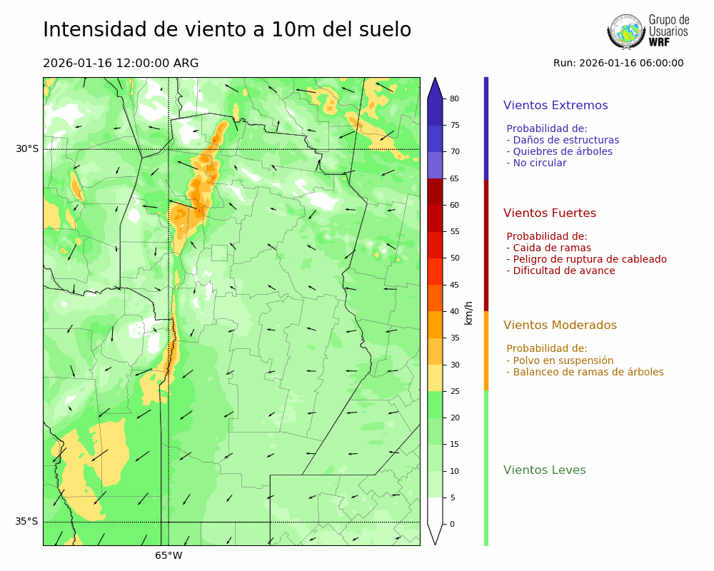 • Intensidad máxima: 13.96 km/h (16/01/2026 21hs.)