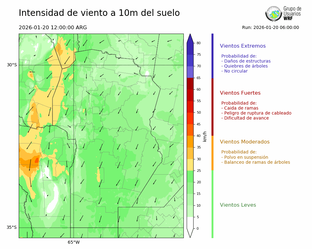 • Intensidad máxima: 19.49 km/h (20/01/2026 17hs.)