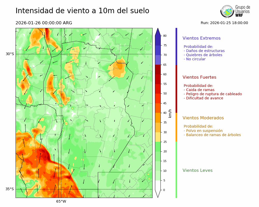 • Intensidad máxima: 22.04 km/h (26/01/2026 07hs.)