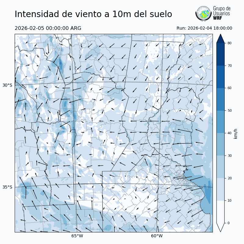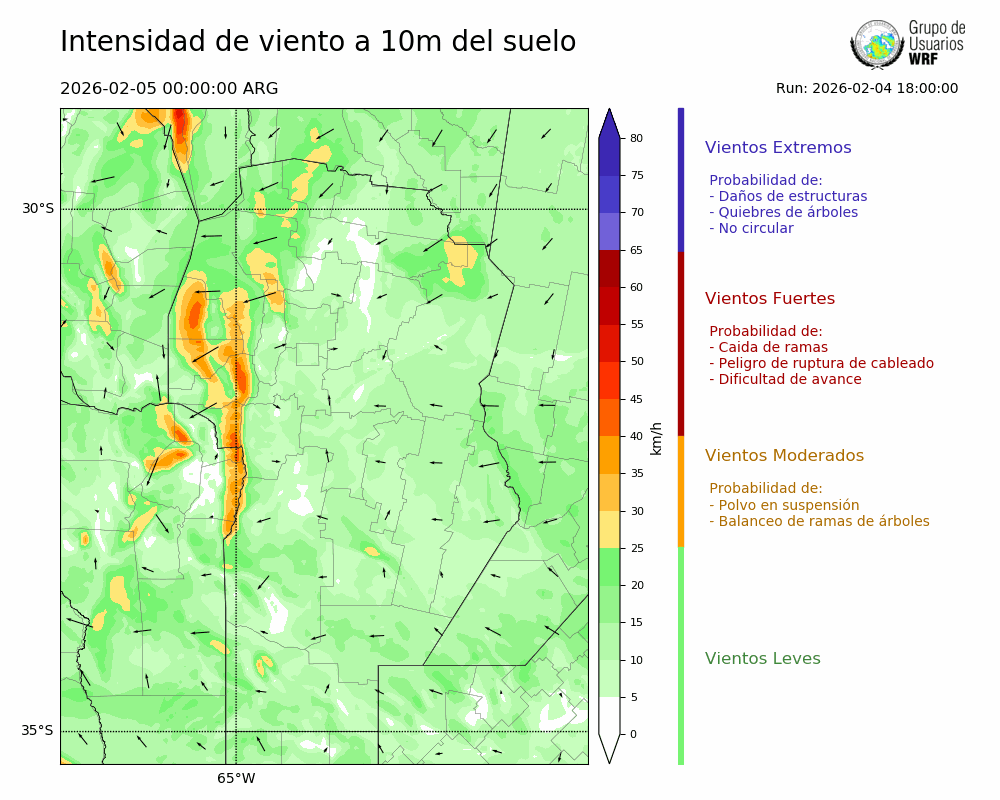 • Intensidad máxima: 4.76 km/h (05/02/2026 06hs.)