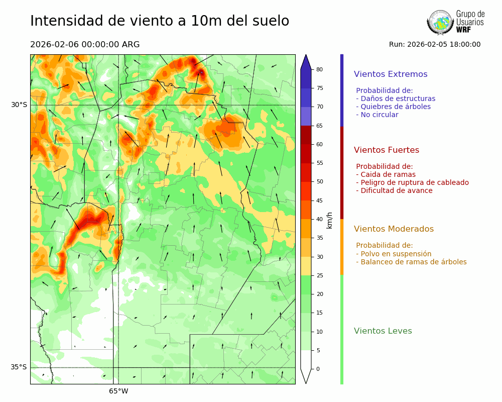 • Intensidad máxima: 17.54 km/h (06/02/2026 01hs.)