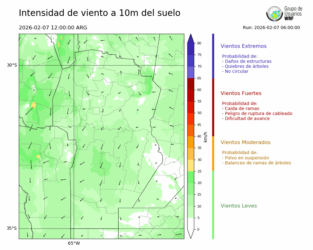 • Intensidad máxima: 18.29 km/h (07/02/2026 20hs.)
