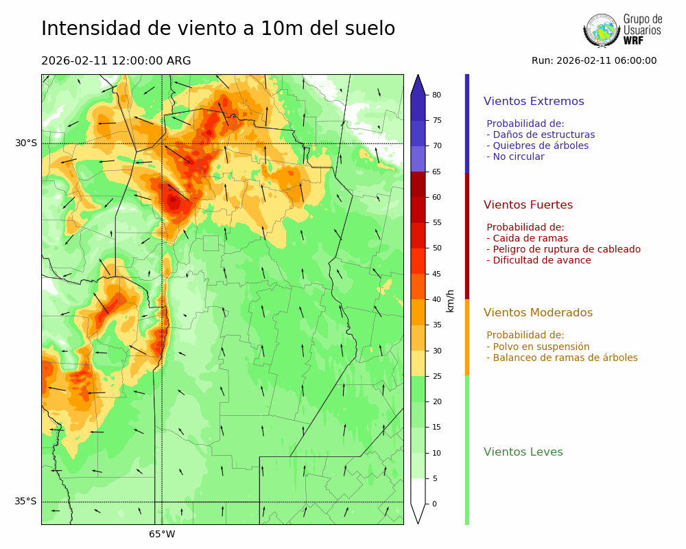 • Intensidad máxima: 15.48 km/h (11/02/2026 12hs.)