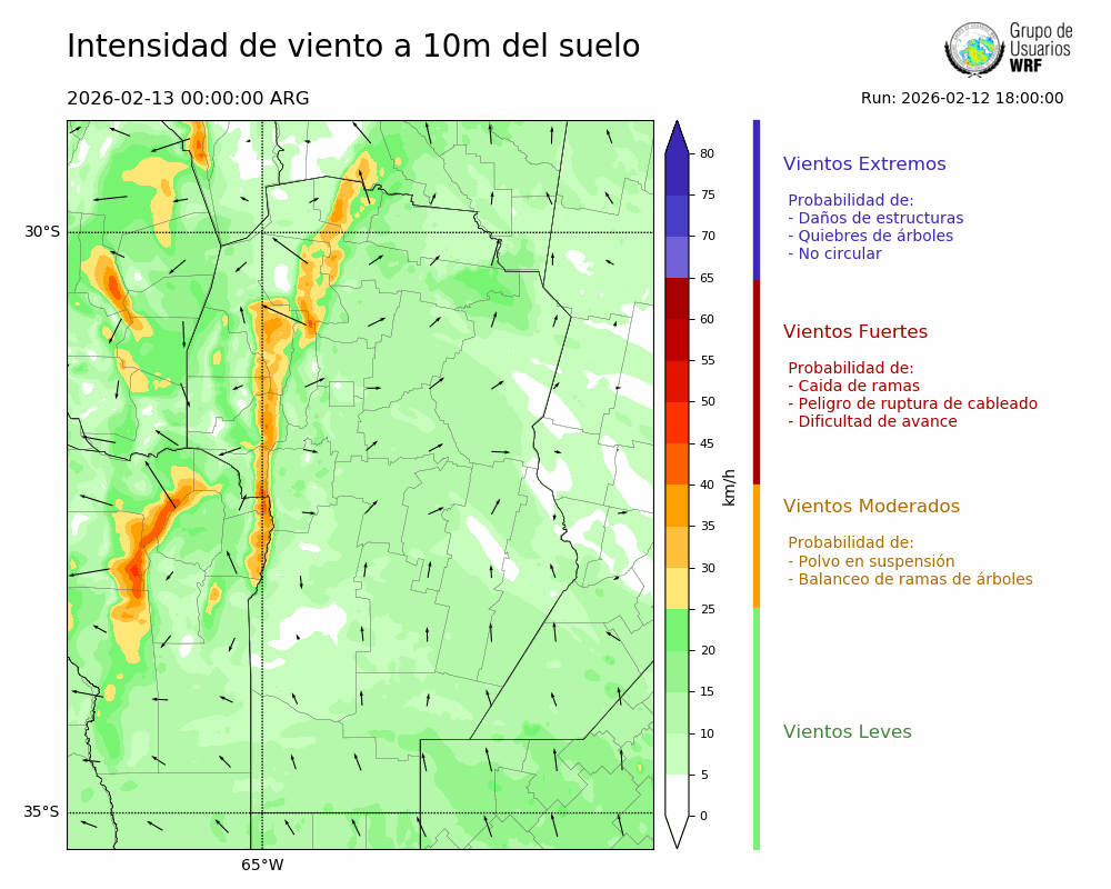 • Intensidad máxima: 13.88 km/h (13/02/2026 08hs.)
