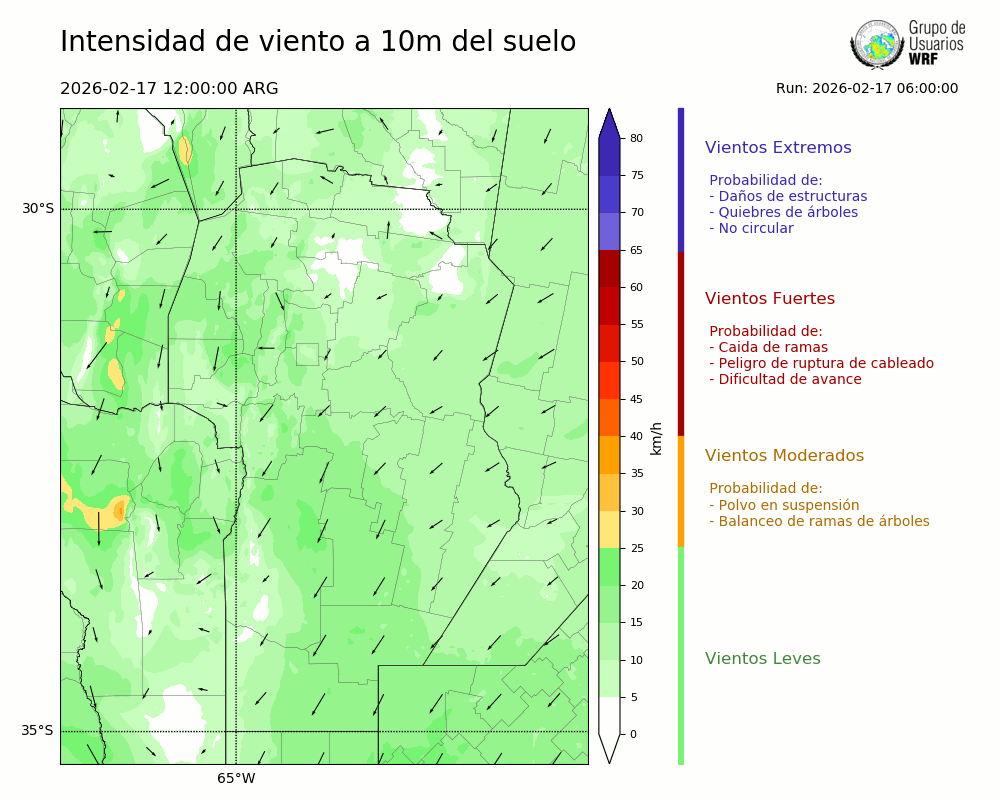 • Intensidad máxima: 6.23 km/h (17/02/2026 23hs.)