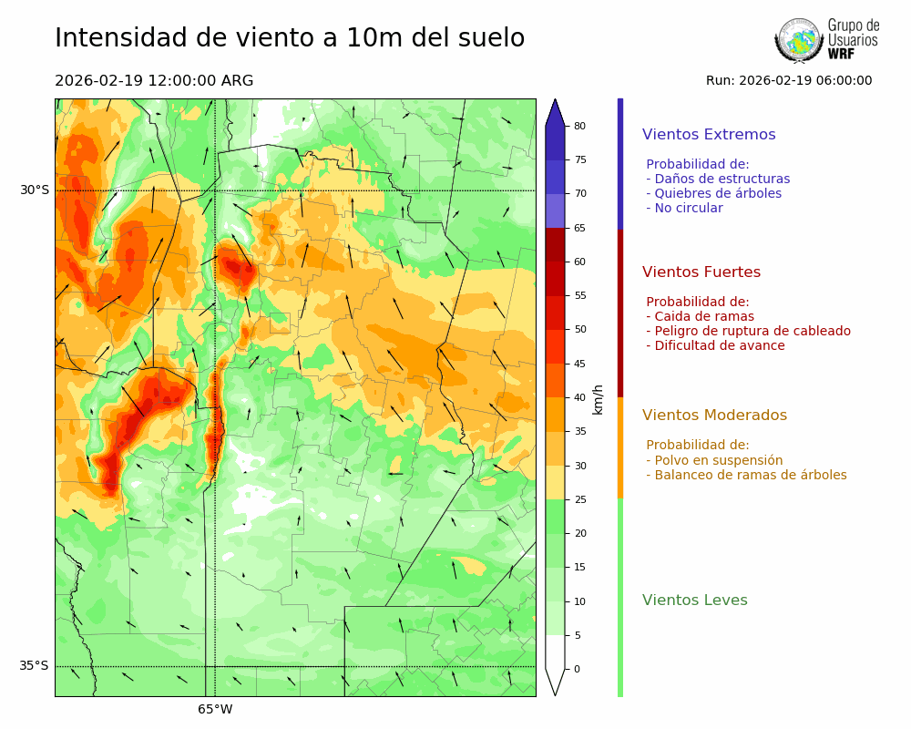 • Intensidad máxima: 8.01 km/h (20/02/2026 04hs.)
