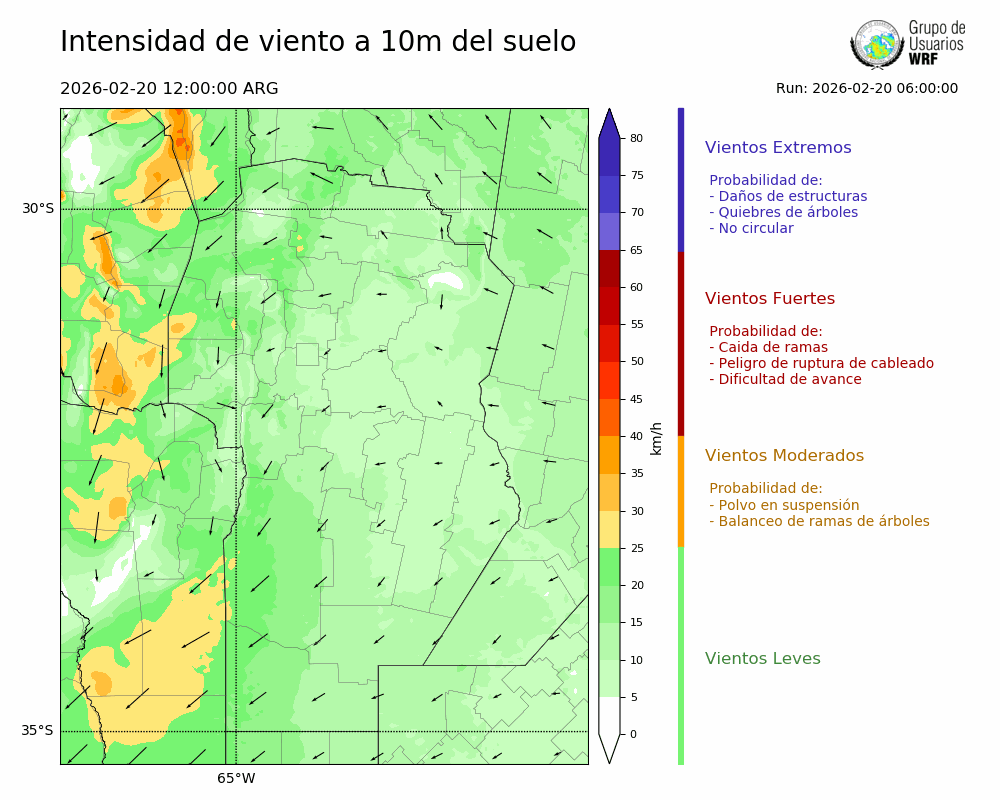 • Intensidad máxima: 14.75 km/h (20/02/2026 20hs.)