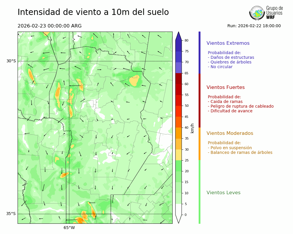 • Intensidad máxima: 10.29 km/h (23/02/2026 11hs.)