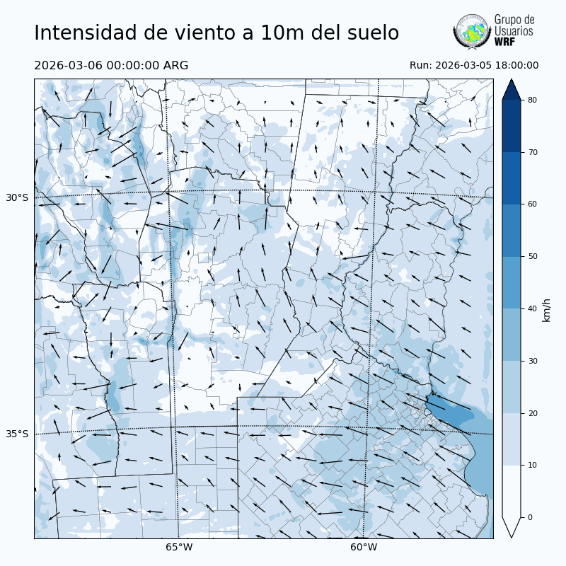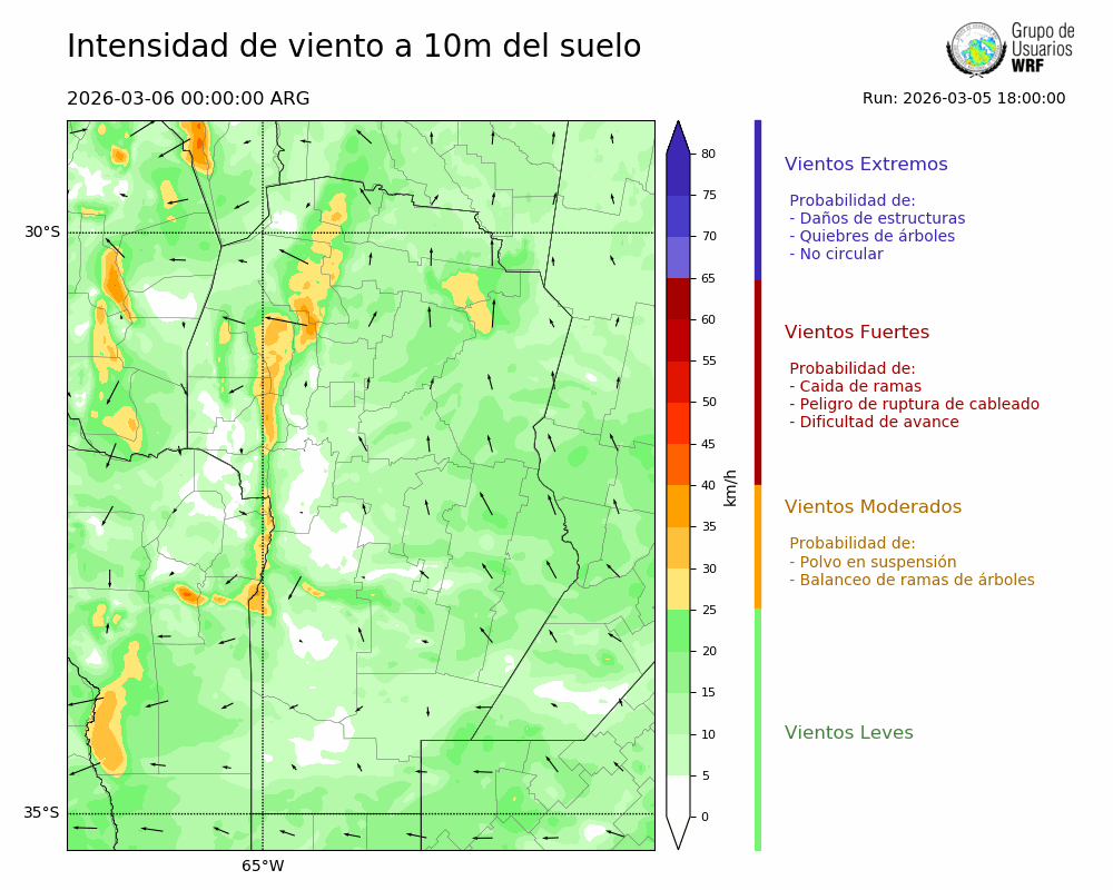 • Intensidad máxima: 17.13 km/h (06/03/2026 06hs.)