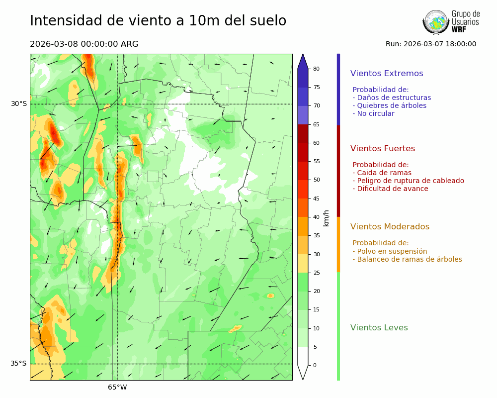 • Intensidad máxima: 12.50 km/h (08/03/2026 11hs.)