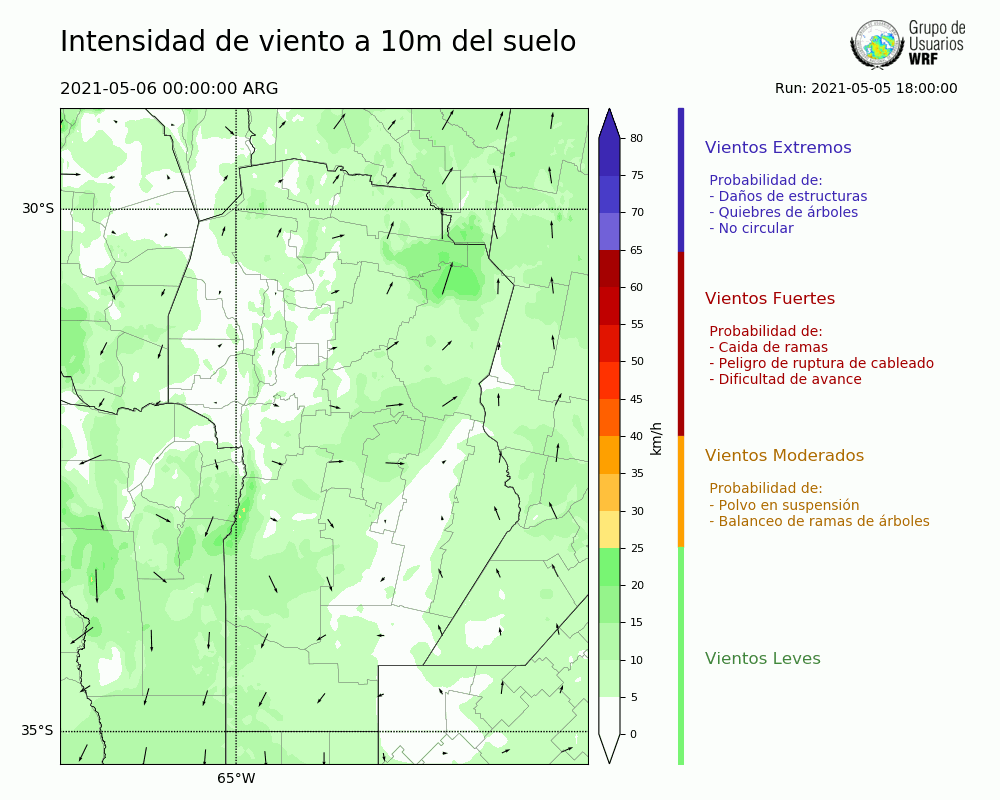 • Intensidad máxima: 20.67 km/h (06/05/2021 05hs.)
