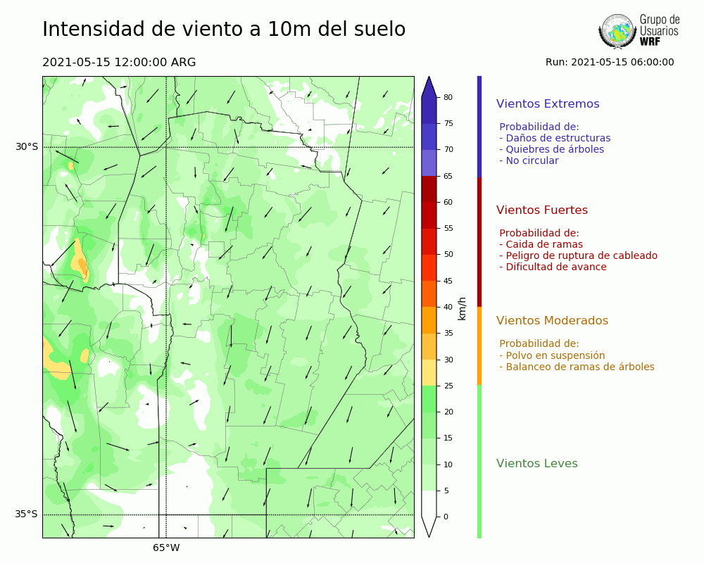 • Intensidad máxima: 7.52 km/h (15/05/2021 18hs.)