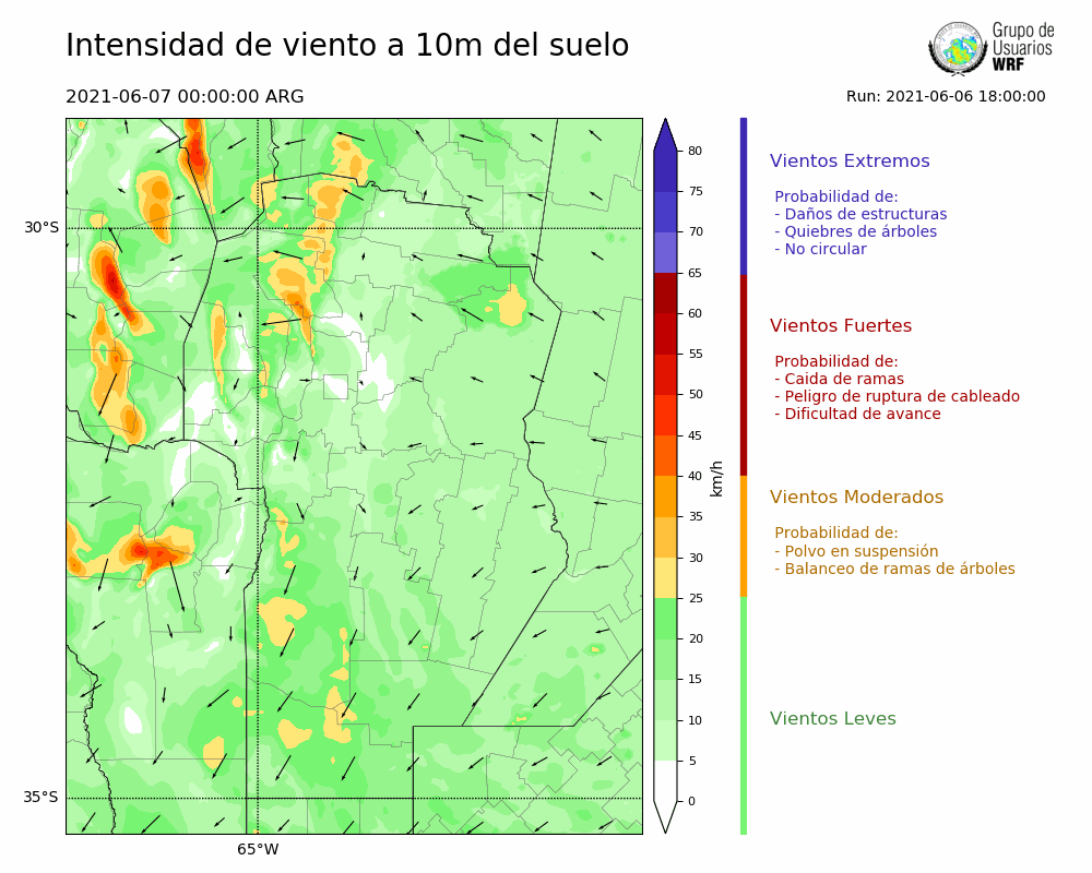 • Intensidad máxima: 17.01 km/h (07/06/2021 03hs.)