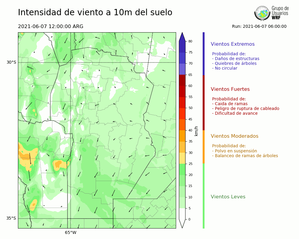 • Intensidad máxima: 12.04 km/h (07/06/2021 13hs.)