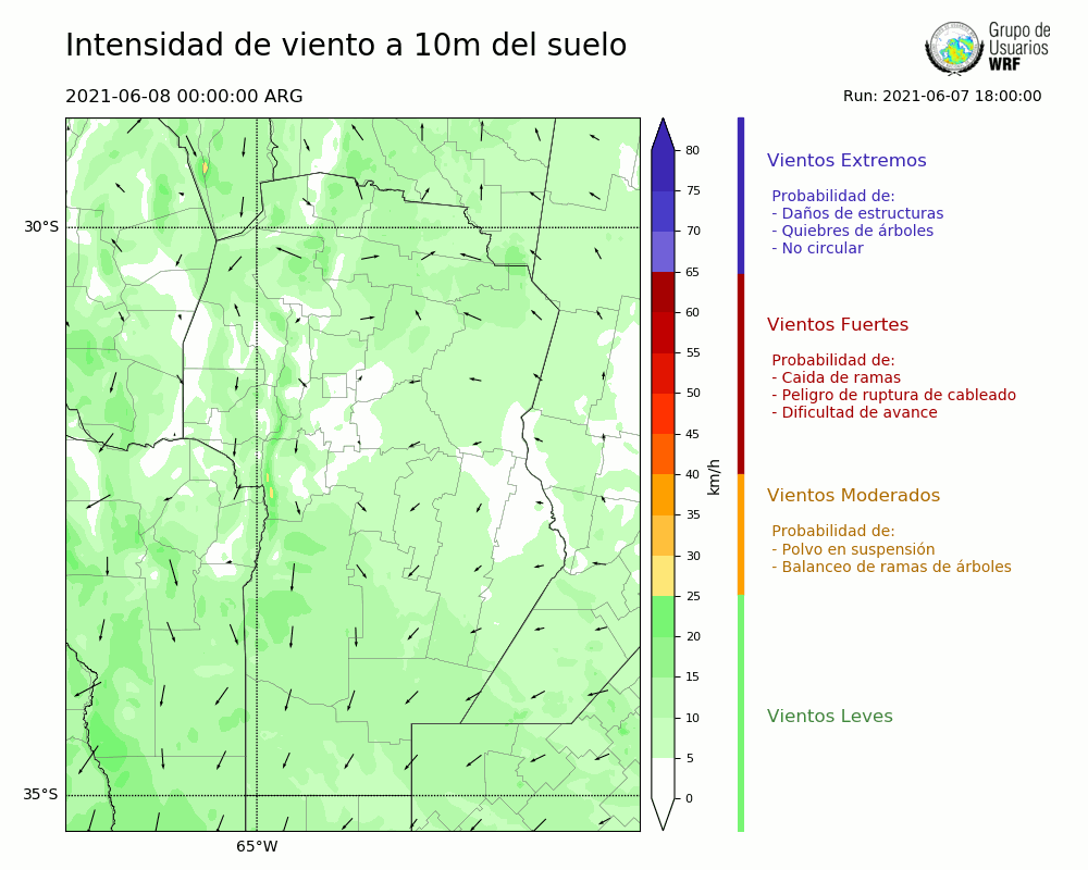 • Intensidad máxima: 17.83 km/h (08/06/2021 05hs.)