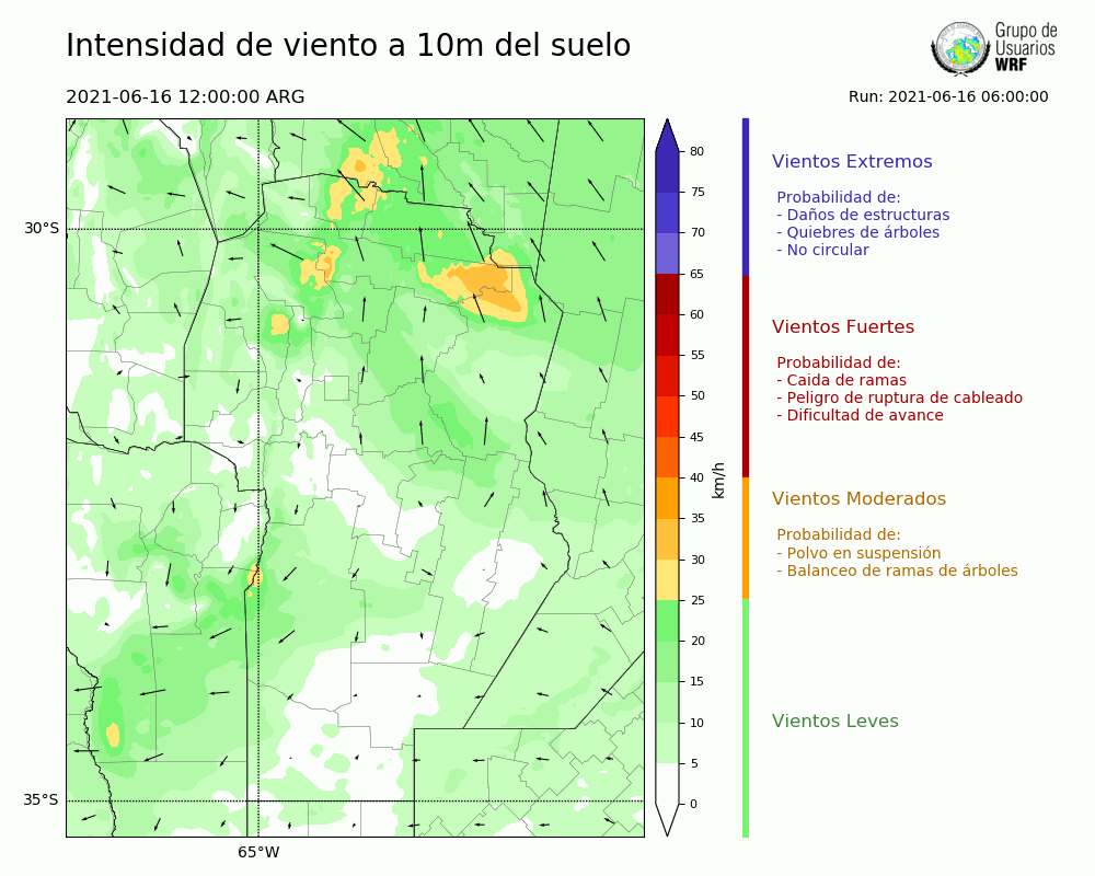 • Intensidad máxima: 9.63 km/h (16/06/2021 16hs.)