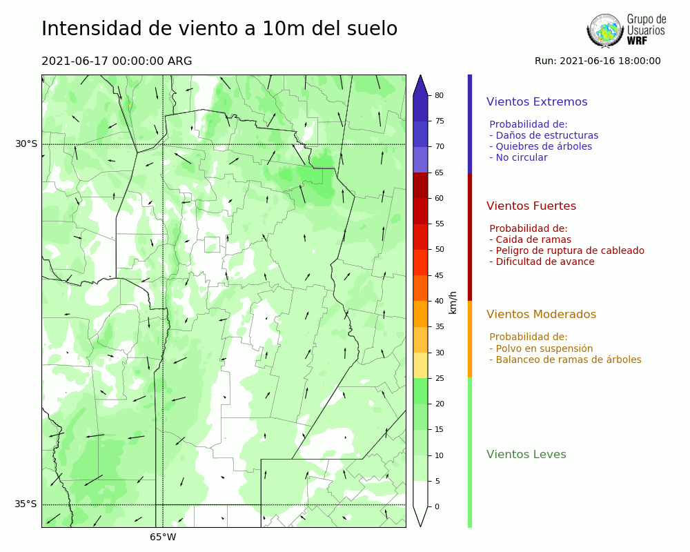 • Intensidad máxima: 7.74 km/h (17/06/2021 07hs.)