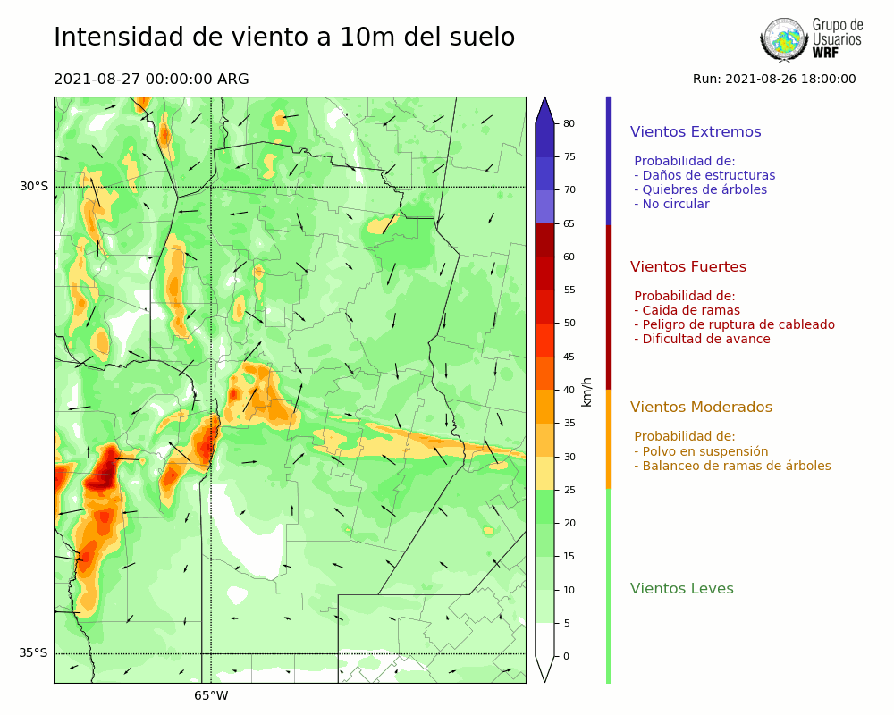 • Intensidad máxima: 26.80 km/h (27/08/2021 03hs.)