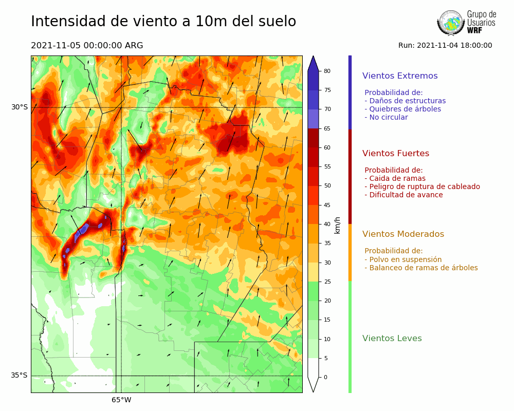 • Intensidad máxima: 42.06 km/h (05/11/2021 04hs.)
