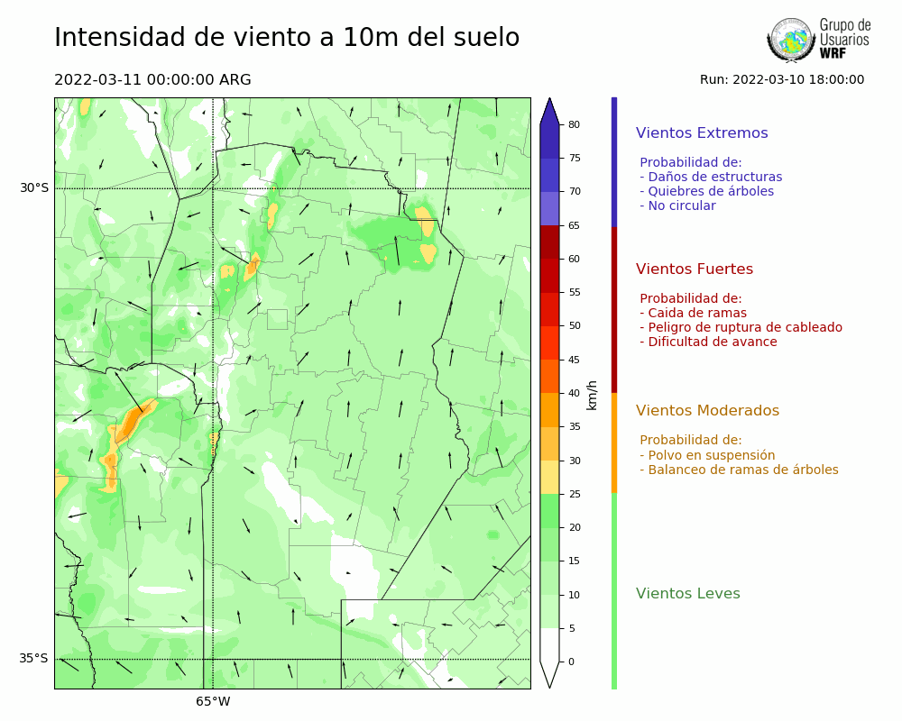 • Intensidad máxima: 12.39 km/h (11/03/2022 03hs.)