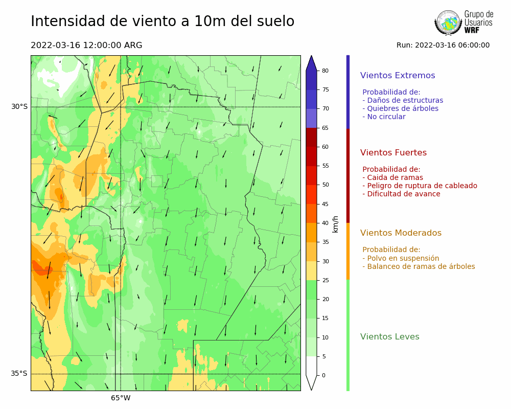 • Intensidad máxima: 13.48 km/h (17/03/2022 16hs.)