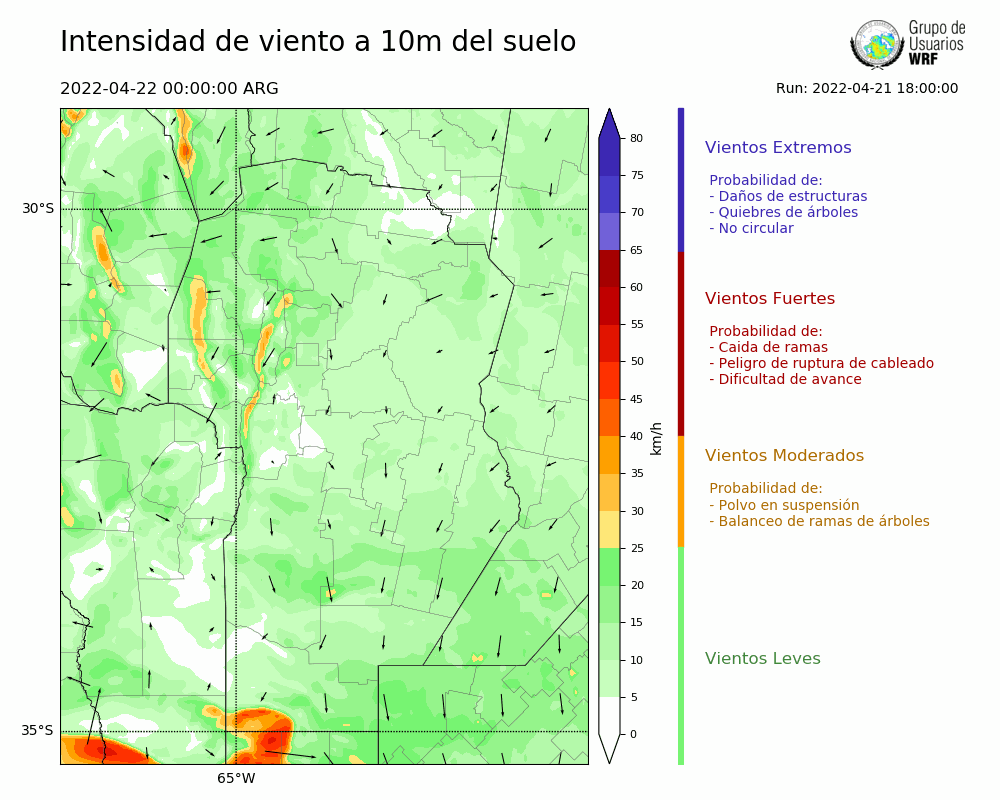 • Intensidad máxima: 32.11 km/h (22/04/2022 09hs.)