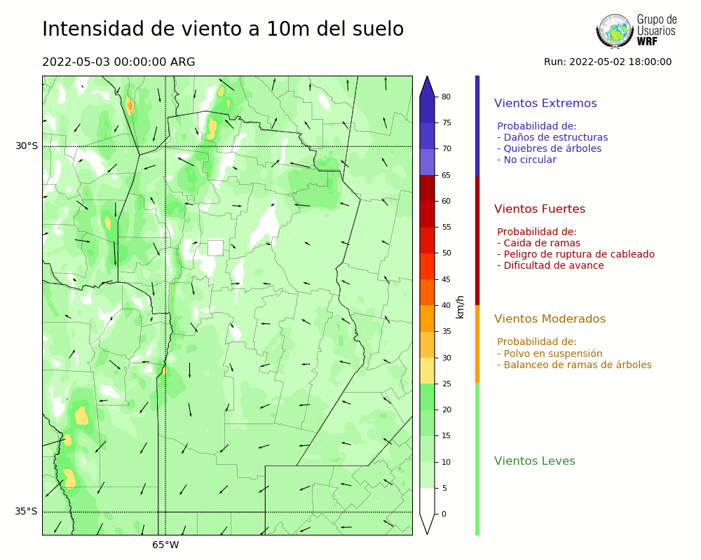 • Intensidad máxima: 23.00 km/h (04/05/2022 17hs.)