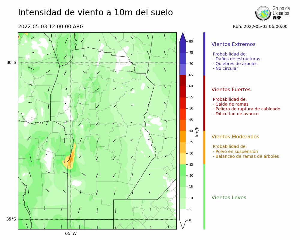 • Intensidad máxima: 20.48 km/h (03/05/2022 16hs.)