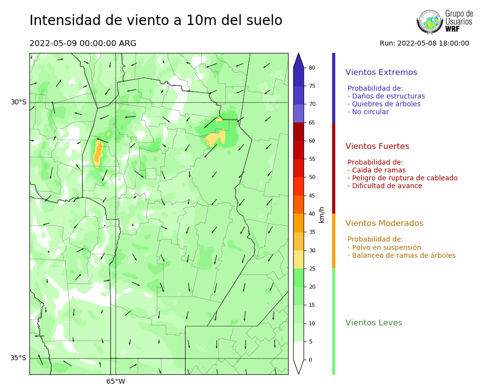 • Intensidad máxima: 24.41 km/h (09/05/2022 11hs.)