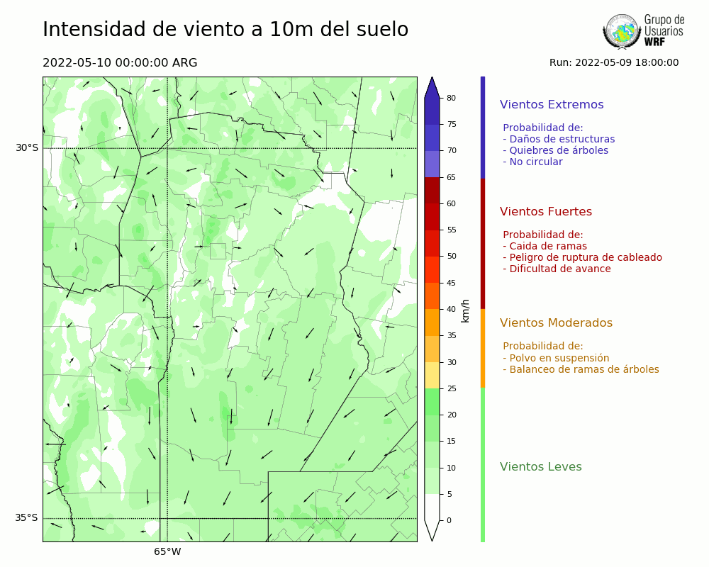 • Intensidad máxima: 15.98 km/h (12/05/2022 01hs.)