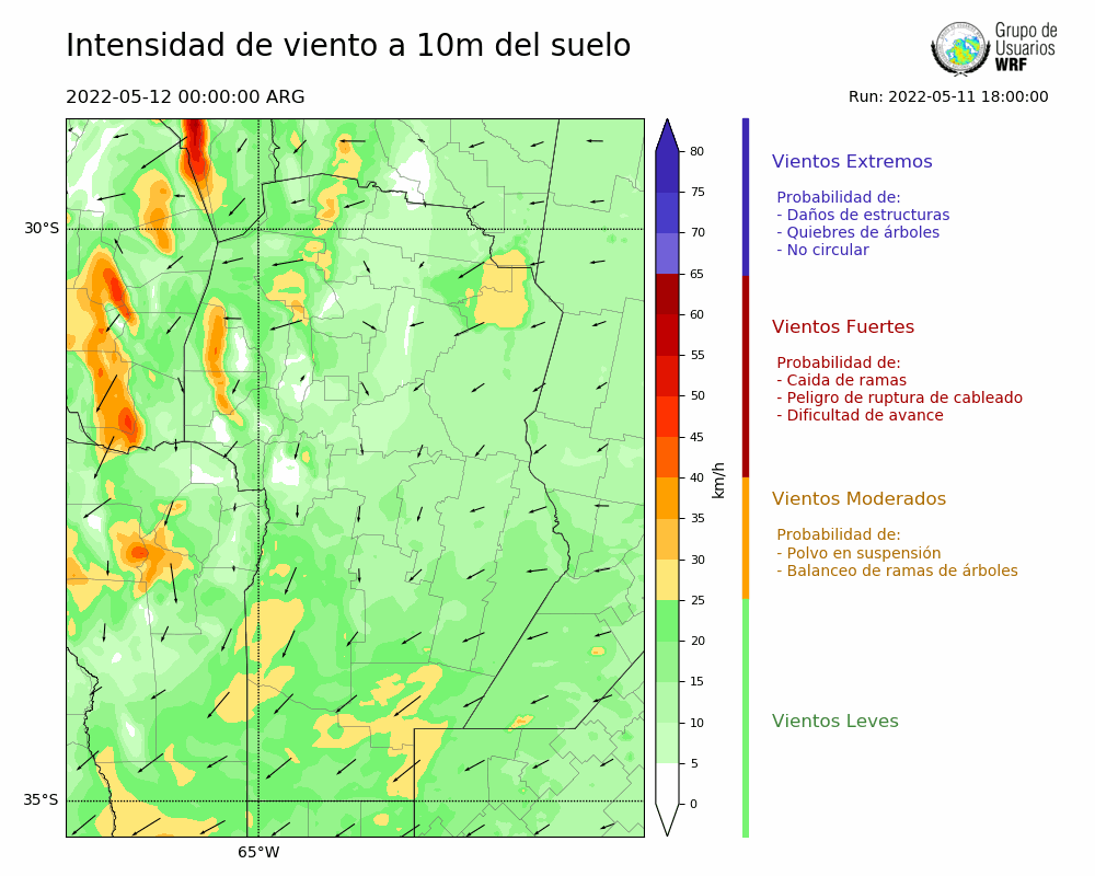 • Intensidad máxima: 32.59 km/h (12/05/2022 11hs.)