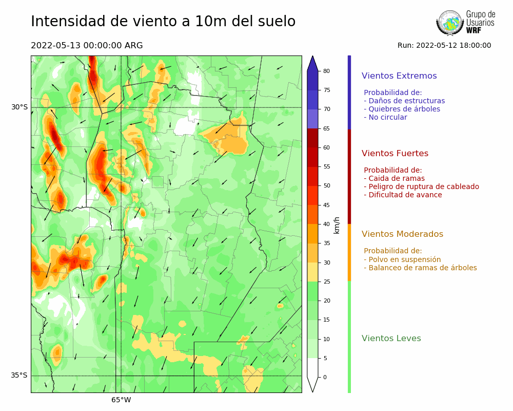 • Intensidad máxima: 10.50 km/h (14/05/2022 17hs.)