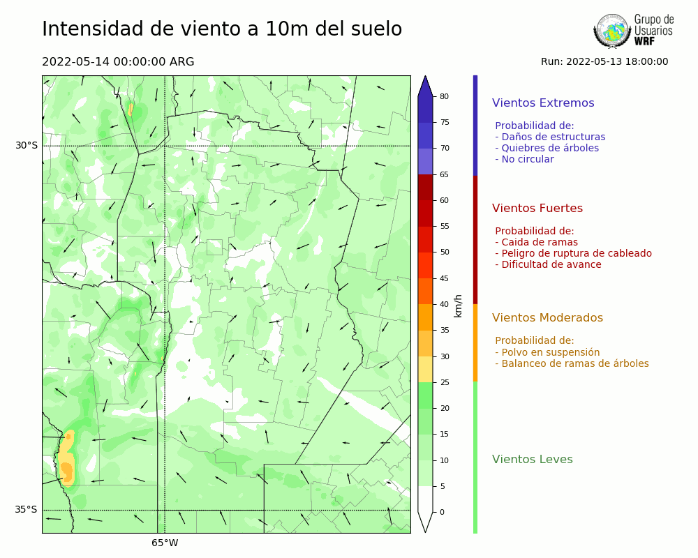 • Intensidad máxima: 9.45 km/h (14/05/2022 13hs.)